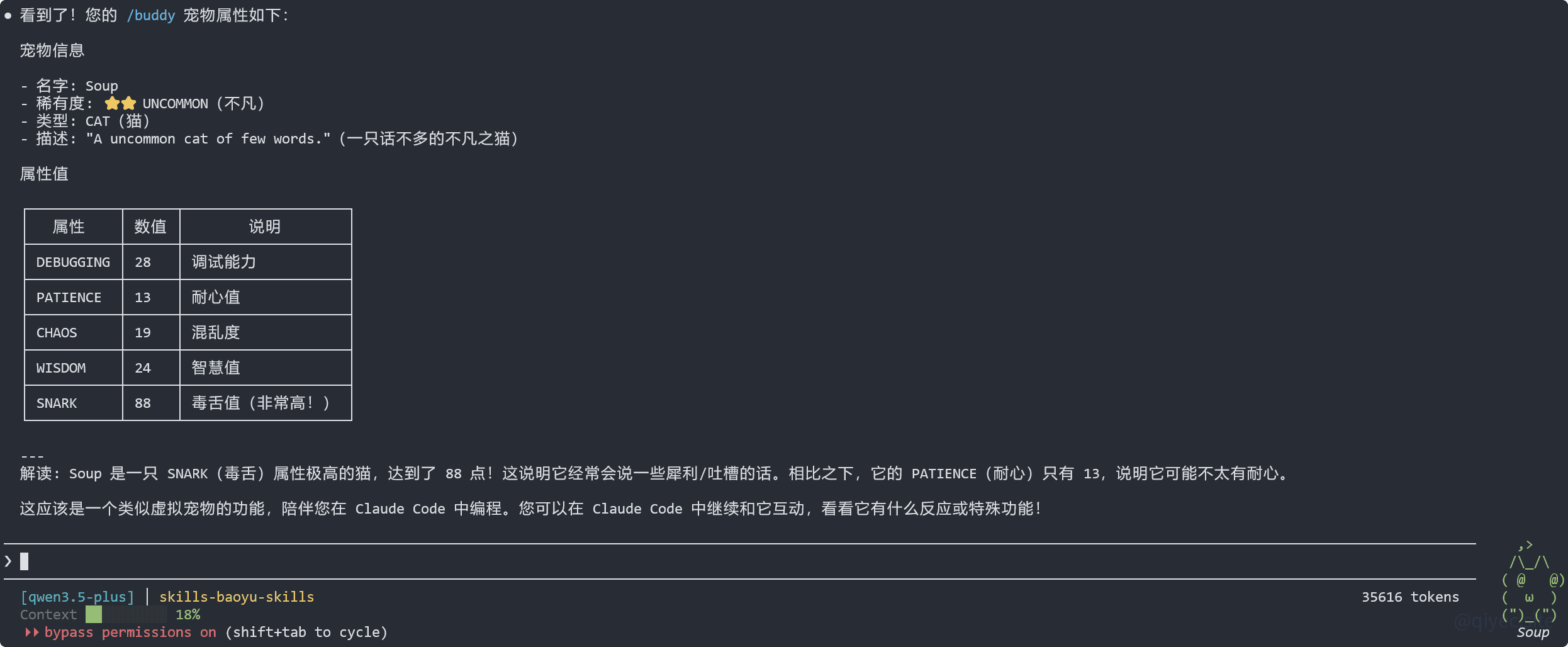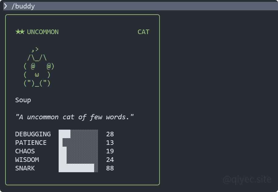 https://qiyec.site/archives/bhNojODY今天愚人节,Claude Code上线了一个宠物系统,输入 /buddy ,会自动为你孵化一只专属小宠物~